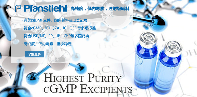 “熱烈祝賀Pfanstiehl的注射級甘氨酸Glycine(G-140)喜獲CDE登記號F20250000403, 這是Pfanstiehl產品獲得的第18個CDE登記號!”甘氨酸在醫藥輔料制劑中應用廣泛,, 可作為緩沖劑,增溶劑,穩定劑等,具有諸多優勢。Pfanstiehl秉承一貫高品質理念,為滿足全球生物制藥行業對于高品質甘氨酸的需求,隆重推出的注射級甘氨酸Glycine (G-140), 具有超高純度,超低內毒素,超低金屬殘留的特點,單獨檢測29種金屬離子,并且新增DNA,RNA,DNA酶,RNA酶和脂肪酶,亞硝酸鹽等多項質量指標的檢測,符合多國藥典規定(USP, EP, BP, JPE, ChP),可用于生物治療性藥物和疫苗的生產。產品信息:· 產品名稱:Glycine, High Purity, Low Endotoxin, Low Metals, USP, EP, BP, JPE, ChP (G-140)· 中文名稱:甘氨酸· 分子式:C2H5NO2· 分子量:75.07 g / mol· CAS號:56-40-6· 產品貨號:G-140產品特點: · 超高純度,超低內毒素,超低微生物含量,超低金屬雜質殘留· 質量指標新增DNA,RNA,DNA酶,RNA酶,脂肪酶和亞硝酸鹽檢測· 符合多國藥典:USP, EP, BP, JPE, ChP· 符合ICH Q3D標準· 符合GMP標準· 已獲DMF和CDE登記號 產品應用:· 緩沖劑· 穩定劑· 增溶劑如果您對Pfanstiehl注射級別Glycine G-140感興趣,歡迎聯系Pfanstiehl 中國區代理商北京西美杰科技有限公司獲得如下詳細的產品概況說明文件和測試樣品。Pfanstiehl Inc.最新產品系列如下,歡迎聯系北京西美杰科技有限公司獲取100g裝免費樣品。北京西美杰科技有限公司為Pfanstiehl中國代理,為客戶提供完善的技術支持與售后服務。歡迎撥打西美杰客服電話400-050-4006或者登陸網站www_xmjsci_com.tianhuangas.com了解更多信息。 更多>